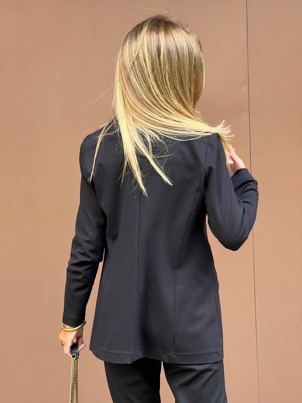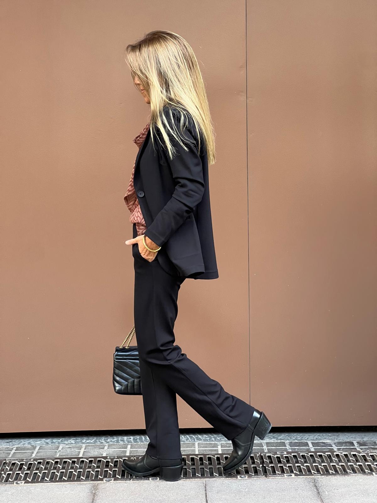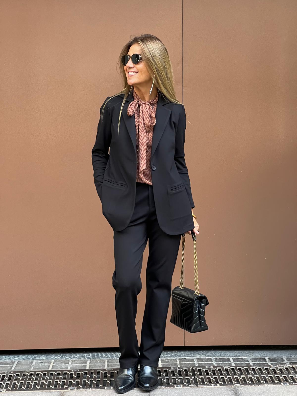 - Composición: 75 % poliéster, 23 % viscosa y 2 % elastano