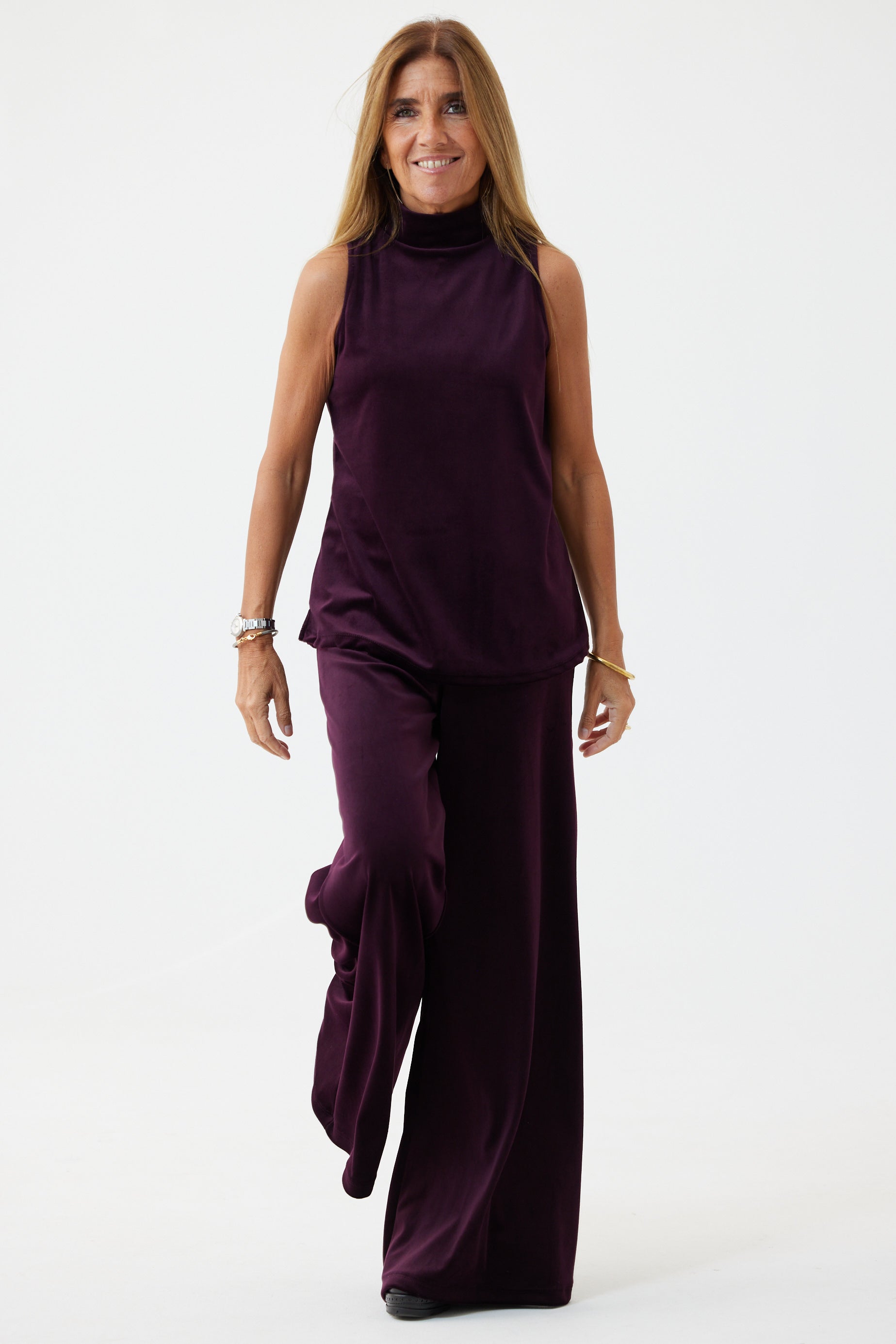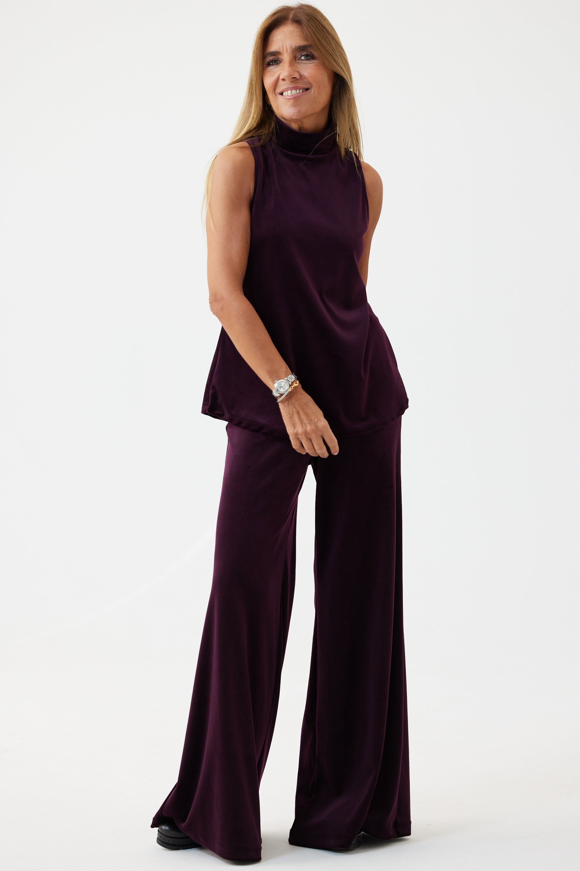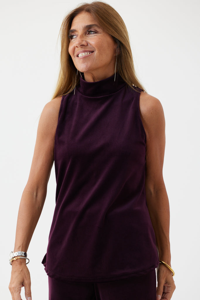 Top cuello alto soft velvet burdeos