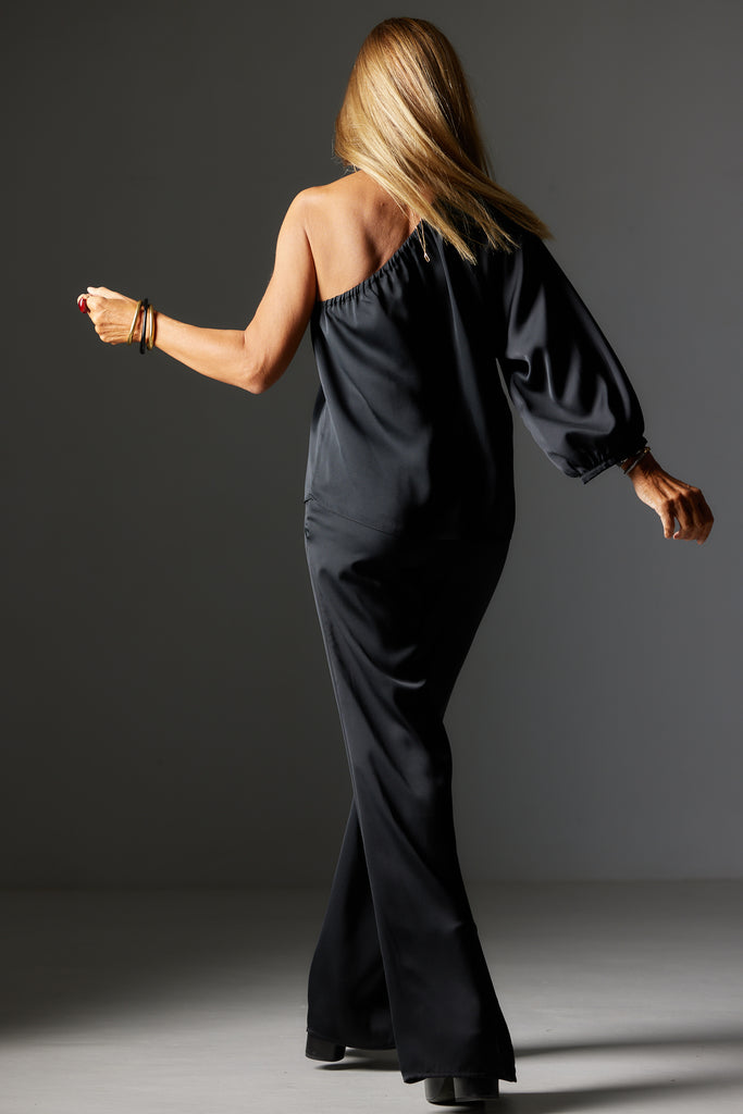 Blusa asimétrica satén negra